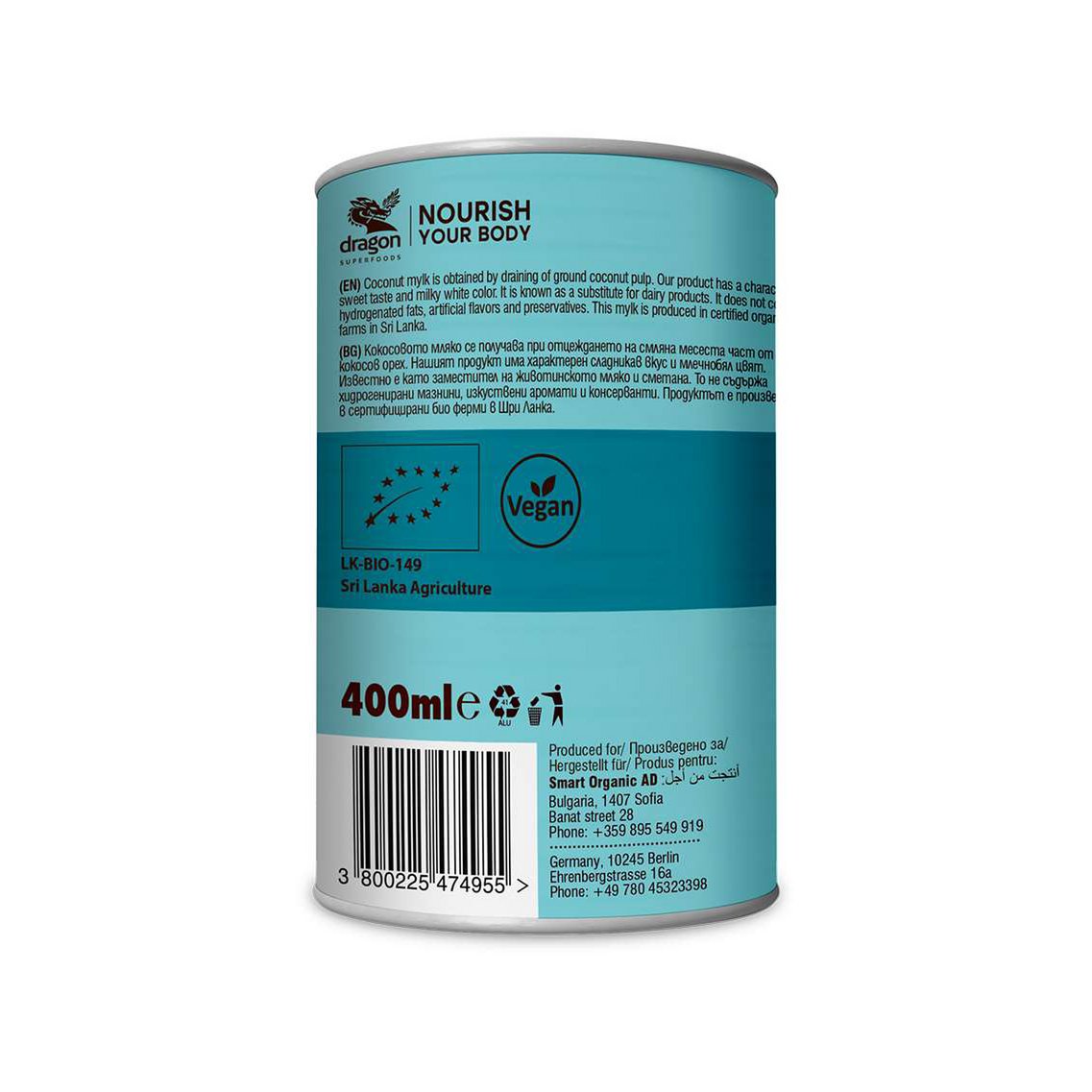 Coconut mylk, 17% fats, organic, Dragon Superfoods, 400g